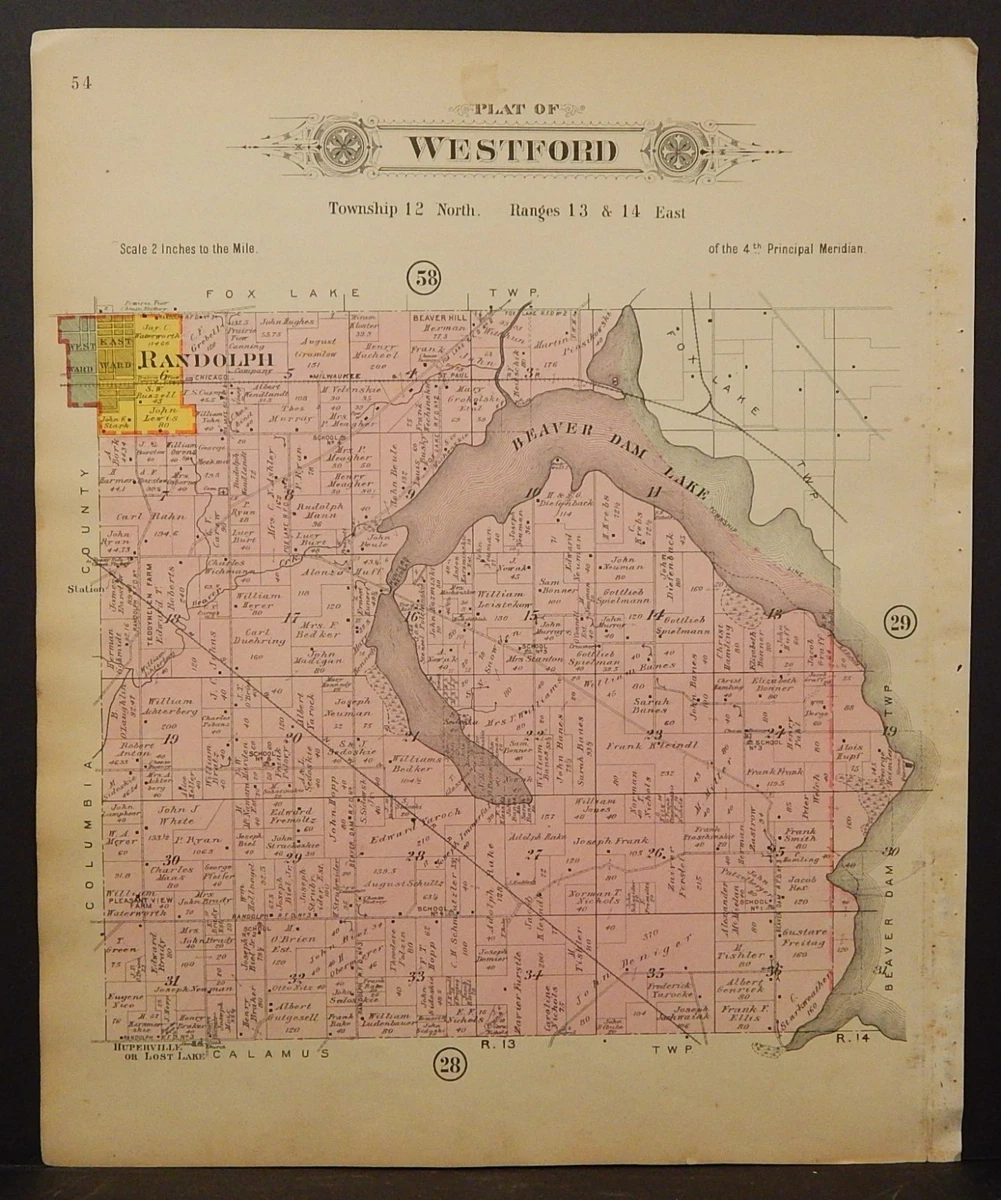 1873 Plat Map ~ WESTFORD Twp., DODGE Co., WISCONSIN RANDOLF