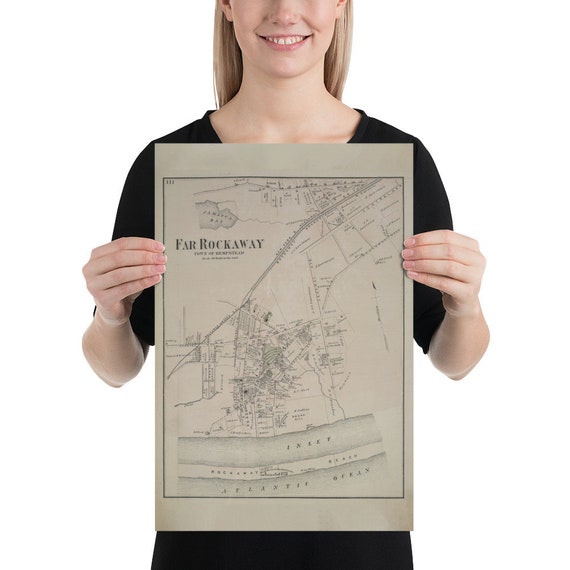 Old Far Rockaway NY Map 1873 Vintage Queens New York Neighborhood