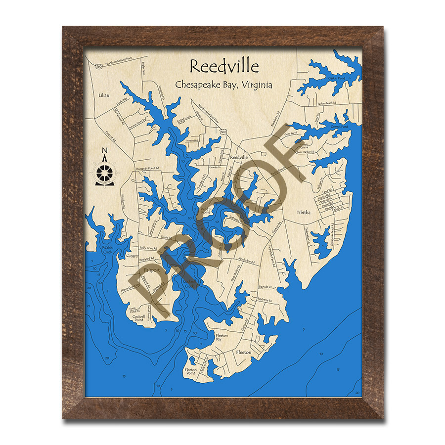 Reedville Chesapeake Bay 3D Wood Map, Virginia, Custom Map Art